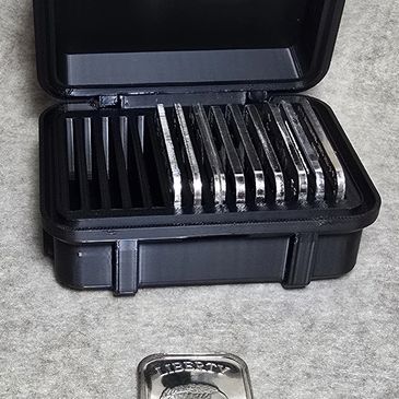 This box holds 90 x 1g bullion bars. It comes with 9 trays that hold 10 x 1g bars.